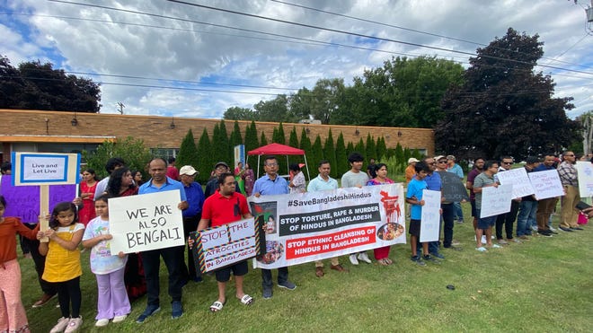 Niraj WarikooHundreds of Bangladeshi American Hindus and their supporters held two protests in metro Detroit on Sunday in support of minority groups in Bangladesh under attack over the past week after the removal of former Prime Minister Sheikh Hasina.