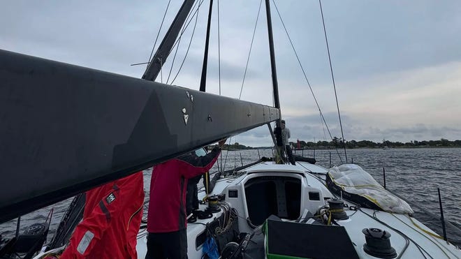 When the mast settled, the crew had to rapidly assess next steps. The biggest fear is that the broken mast will bang against the boat and puncture a hole, Dieball said. A mast on a boat that size can be 60 or 70 feet tall, he said.